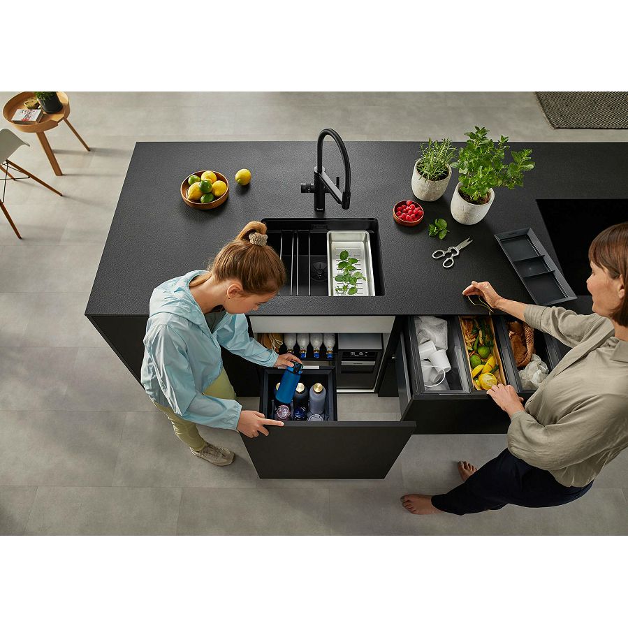 Система сортировки отходов FLEXON II 60/3 Low от Blanco воплощает философию бескомпромиссного качества, инновационного дизайна и функциональности, превращая самое активное место на кухне в продуманный, эргономичный и эстетичный центр для приготовления пищи.