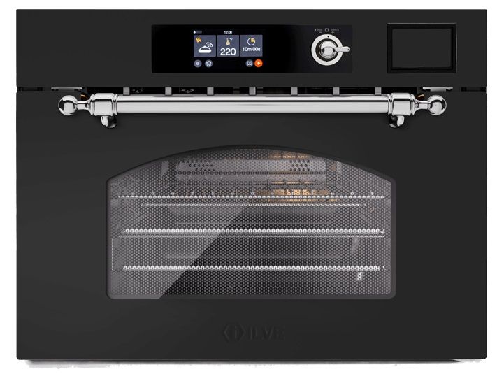 Многофункциональный компактный электрический духовой шкаф с функциями пароварки и микроволновой печи.