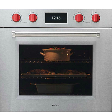 Духовые шкафы Wolf M-серии шириной 759 мм выполнены в трёх коллекциях: Contemporary, Transitional и Proffesional, и могут быть либо в одиночном, либо в сдвоенном форматах.