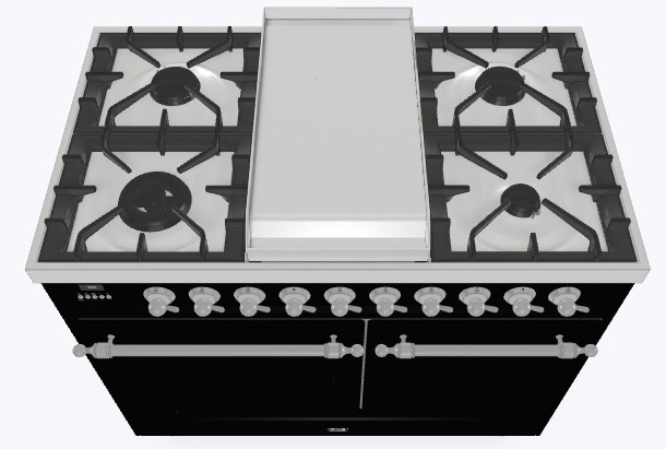 • Тип конфорок: 4 газовые конфорки, WOK конфорка, жарочная поверхность Fry Top