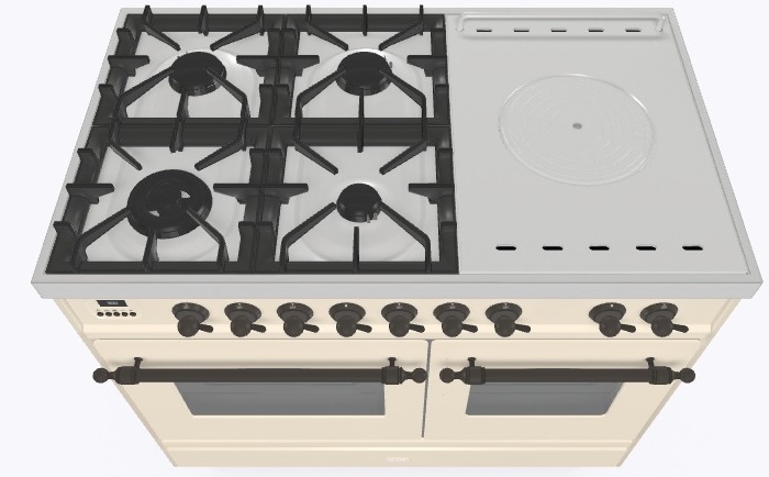 Тип конфорок: 4 газовые конфорки, Dual конфорка, жарочная поверхность Coup de Feu