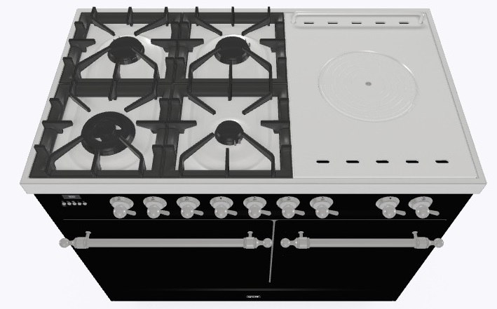 • Тип конфорок: 4 газовые конфорки, Dual конфорка, жарочная поверхность Coup de Feu